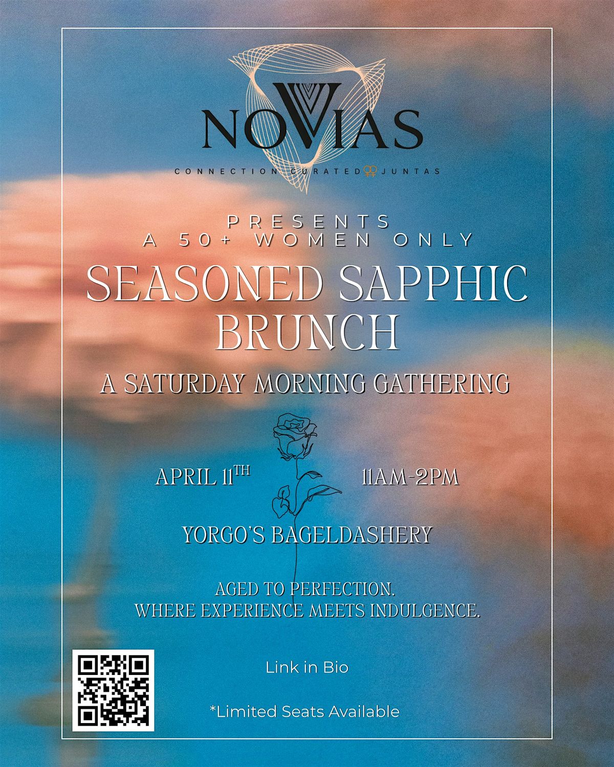 Join us for an intentional, meaningful brunch experience designed for women 50+ — where time slows, energy softens, and connection takes center stage. Think warm conversation, knowing glances, shared laughter, and the quiet luxury of being surrounded by women who truly understand the moment.
