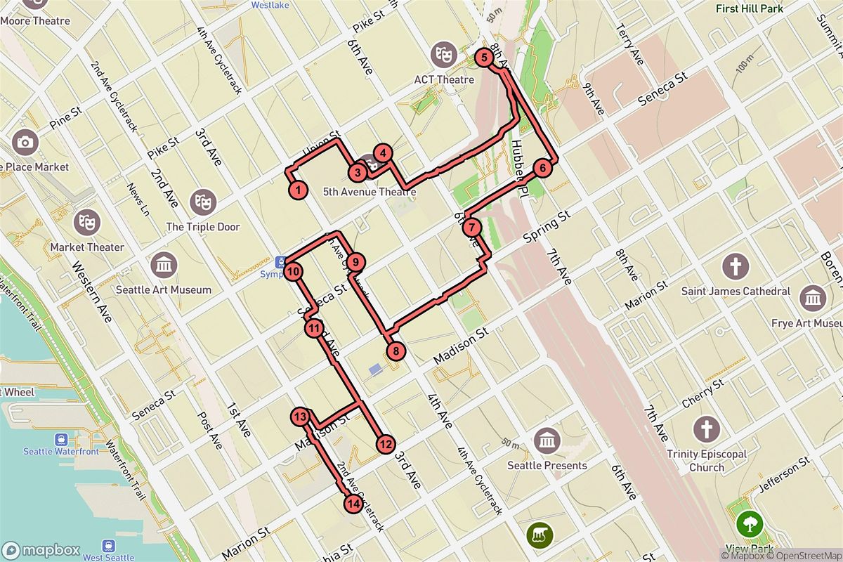- Stops: 14 captivating landmarks including Freeway Park, Town Hall Seattle, Rainier Tower