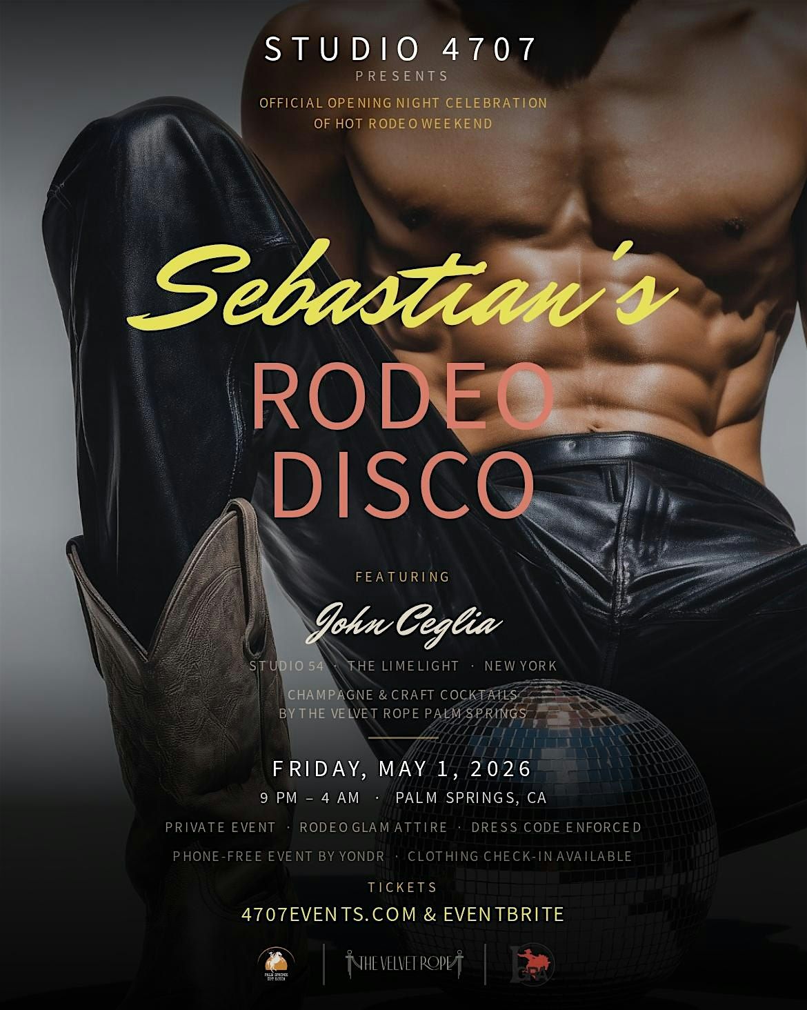🪩 STUDIO 4707 presents Sebastian's Rodeo Disco, and we are bringing that whole glorious world back to life for one extraordinary night during Palm Springs Hot Rodeo Weekend. Because some things deserve to be rediscovered. Because a generation raised on that era deserves to feel it again. And because a new generation deserves to know what a real night out actually feels like.