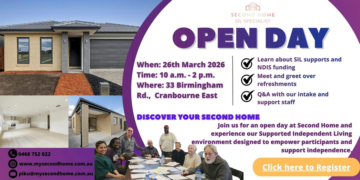 NDIS participants, families, and support coordinators are invited to join us for a Supported Independent Living (SIL) Open Day at My Second Home SIL Specialist.