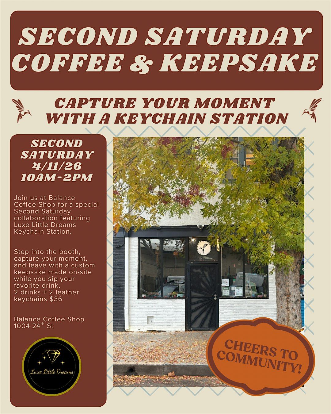 Join us at Balance Coffee Shop for a special Second Saturday collaboration featuring Luxe Little Dreams Keychain Station.