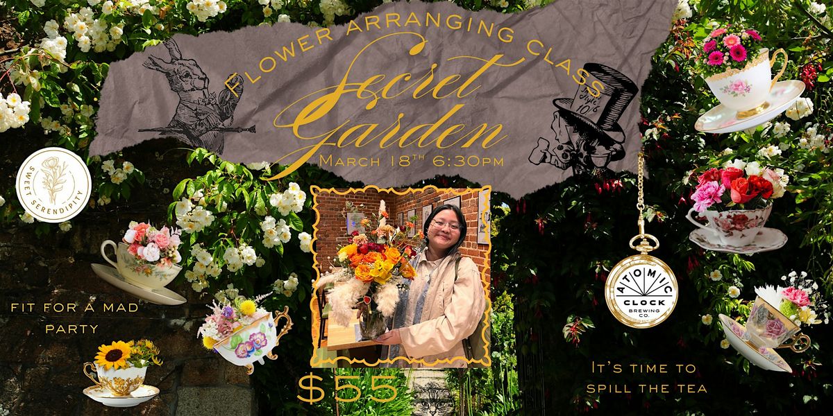 Grab a friend and learn the basics of floral design with local NC blooms at Atomic Clock Brewing! This class will feature hand picked vintage thrifted or upcycled tea cups, floral foam, unique flowers and greenery, and wonder filled add ons. Guided instruction will teach you all the tips and tricks you need to make a beautiful arrangement to bring home with you!