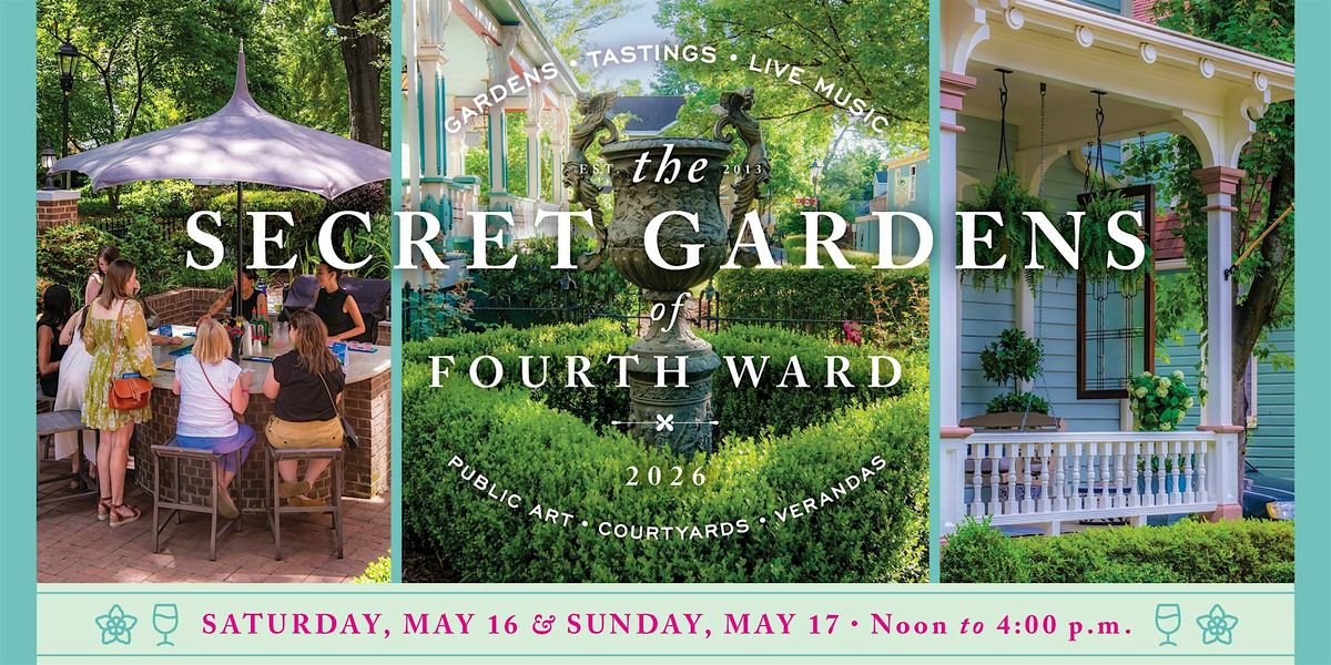 On May 16th and 17th, 2026, from Noon to 4 pm each day, the Friends of Fourth Ward will host the Secret Gardens of Fourth Ward, a garden & lifestyle tour, complete with complimentary food, wine and cocktail tastings at gardens and restaurants along the way. This walkable, self-guided tour through historic Fourth Ward showcases a mix of private courtyards, Victorian front porches, and unique outdoor living spaces. The tour also highlights art, architecture, historic homes, Charlotte's oldest cemetery, and special points of interest along the tour route, effectively making all of Historic Fourth Ward – and the extraordinary quality of life it offers – part of the tour.