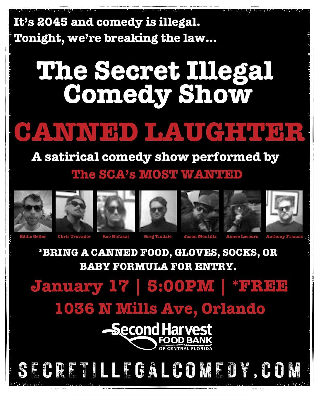 The Secret Illegal Comedy Show: Canned Laughter is a fast, funny, and fully improvised satire where today’s events are history—and you’re part of the resistance. Set in a future where comedy is outlawed, our underground performers will look back on events of 2026 as if they’ve been living with the consequences for 20 years. You, fellow resistance members, will bring a canned food, gloves, socks, or baby formula for entry.