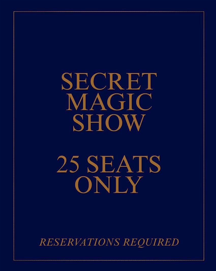 Secret magic show with only 25 seats. An intimate, up-close night of mystery, surprises, and impossible magic. (18+)
