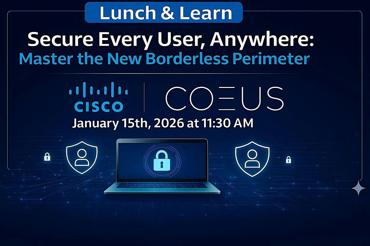 Come join us and learn more about the next generation authenication and borderless AI security powered by Cisco Systems, managed by Coeus Consulting.
