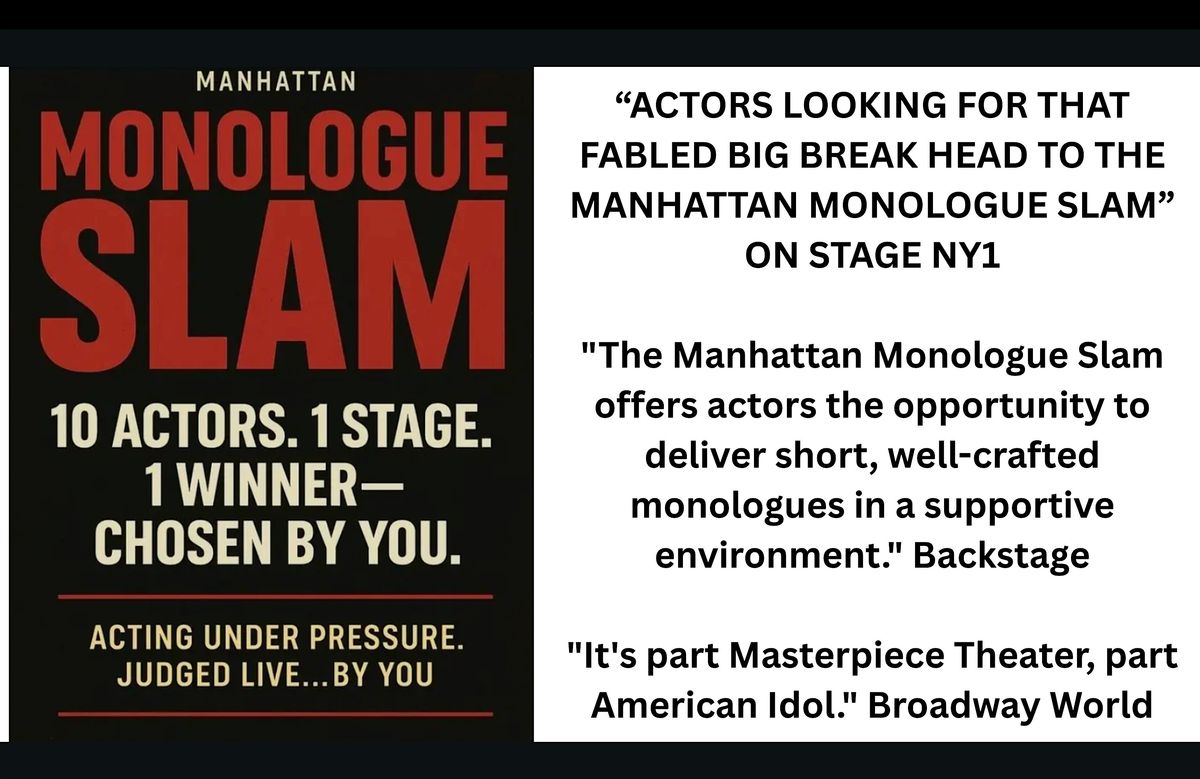 The Manhattan Monologue Slam is where NYC’s boldest actors step into the spotlight and battle it out live with their strongest 30–60 second monologues. This is not an open mic. This is a high-stakes actor showcase where craft, courage, and presence collide.