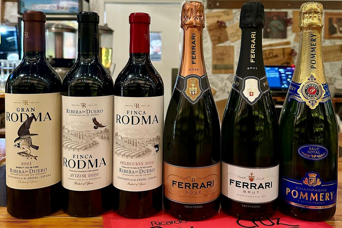 A focused tasting night exploring Ribera del Duero and world-class sparkling wines, with Champagne and Ferrari to celebrate the New Year — serious bottles, real stories, and 10% off bottles to-go during the event.