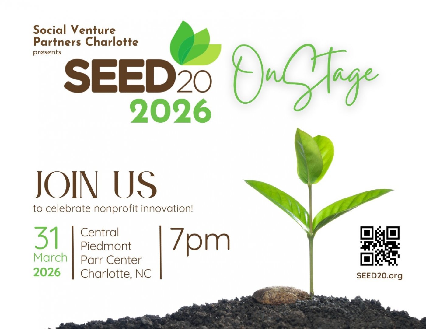 Social Venture Partners Charlotte invites the community to SEED20 OnStage 2026, an evening of storytelling, innovation, and connection that brings Charlotte’s social impact ecosystem to life. The live pitch event will take place Tuesday, March 31 at 7 p.m. at the Parr Center Theater at Central Piedmont, welcoming all community members, philanthropists, and business leaders for a high-energy night of ideas and inspiration.