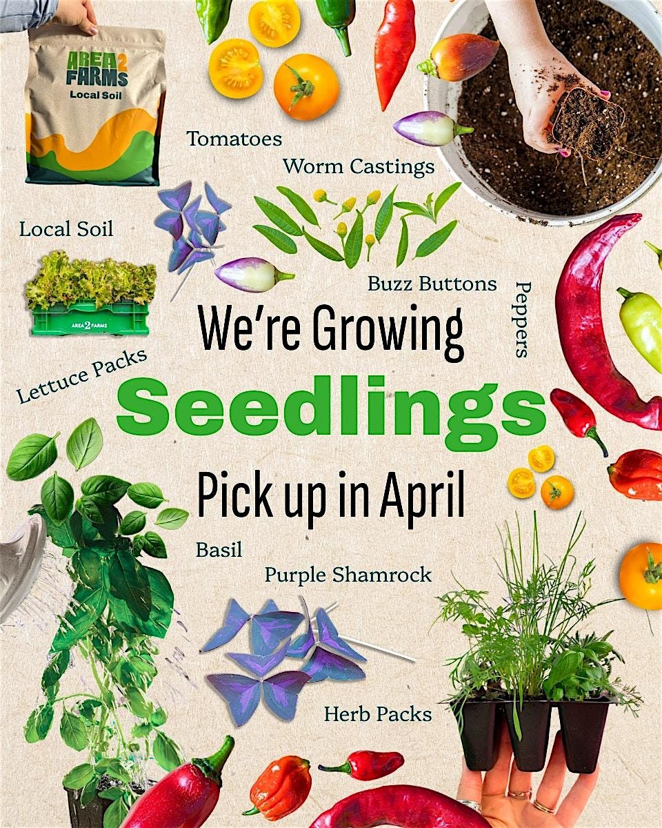 Come pick up your spring seedlings from Area 2 Farms and get a head start on the growing season!