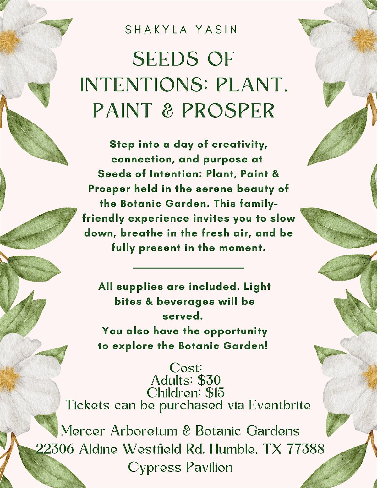 Step into a day of creativity, connection, and purpose at Seeds of Intention: Plant, Paint & Prosper held in the serene beauty of the Botanic Garden. This family-friendly experience invites you to slow down, breathe in the fresh air, and be fully present in the moment.