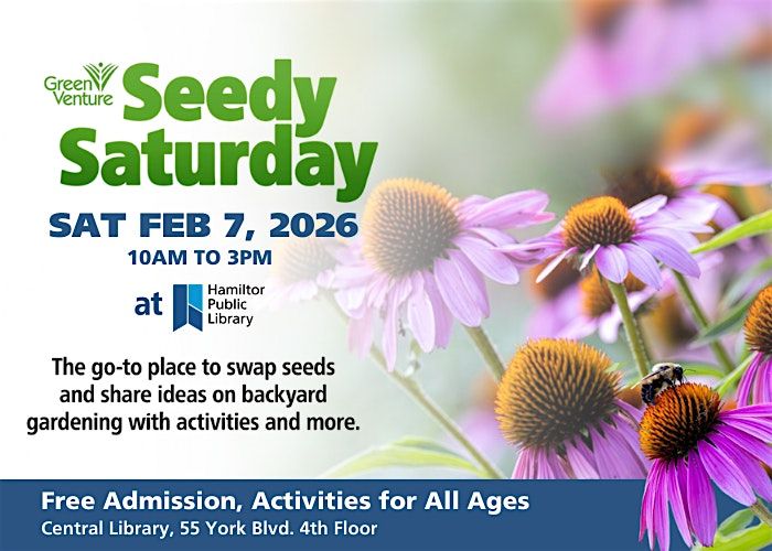 Join us for Hamilton’s 15th Annual Seedy Saturday, hosted by Green Venture and Hamilton Public Library on February 7th from 10 AM to 3 PM