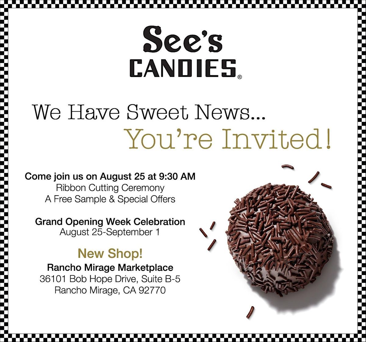 See’s Candies is opening soon at Rancho Mirage Marketplace! Join us for a ribbon cutting ceremony on 8/25 at 9:30AM!About this Event