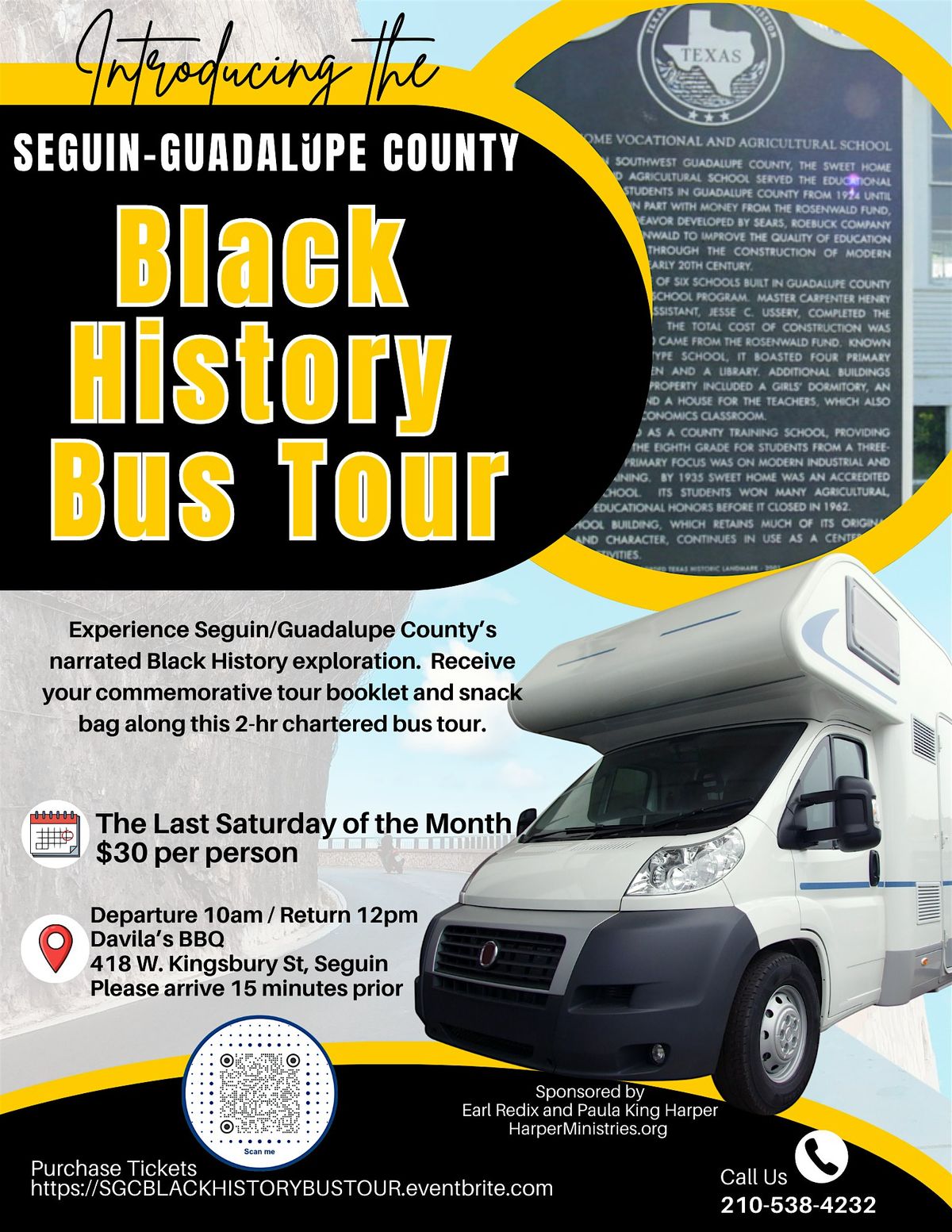 Hop on for a fun in-person journey through the rich Black history of Seguin and Guadalupe County! This bus tour will take you to key sites, stories, and landmarks that highlight the incredible contributions and culture of the Black community. Perfect for history buffs and curious minds alike—come learn, connect, and celebrate!