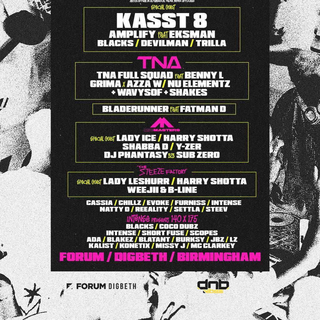 Selecta returns with a heavyweight DnB x Grime clash at Forum Birmingham. This is raw drum & bass pressure meeting pure grime energy.Music Genres : Drum and Bass, Grime