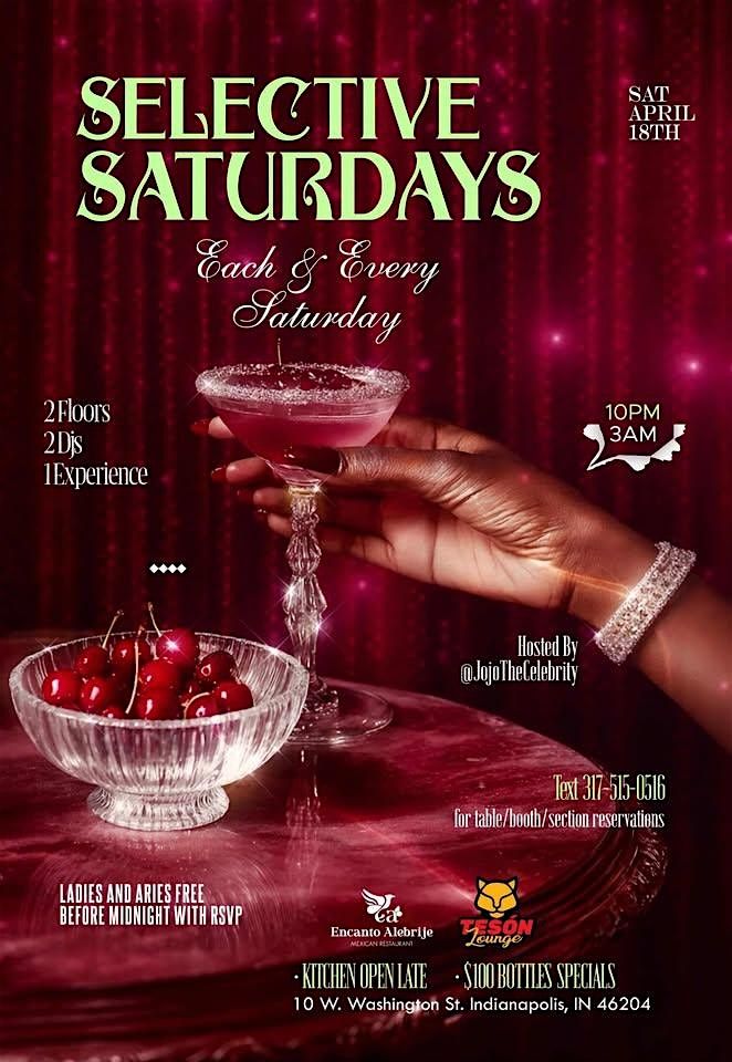 Text “Selective Saturdays to 317-515-0516 for table/sections/booth reservations and more information or DM @JojoTheCelebrity.