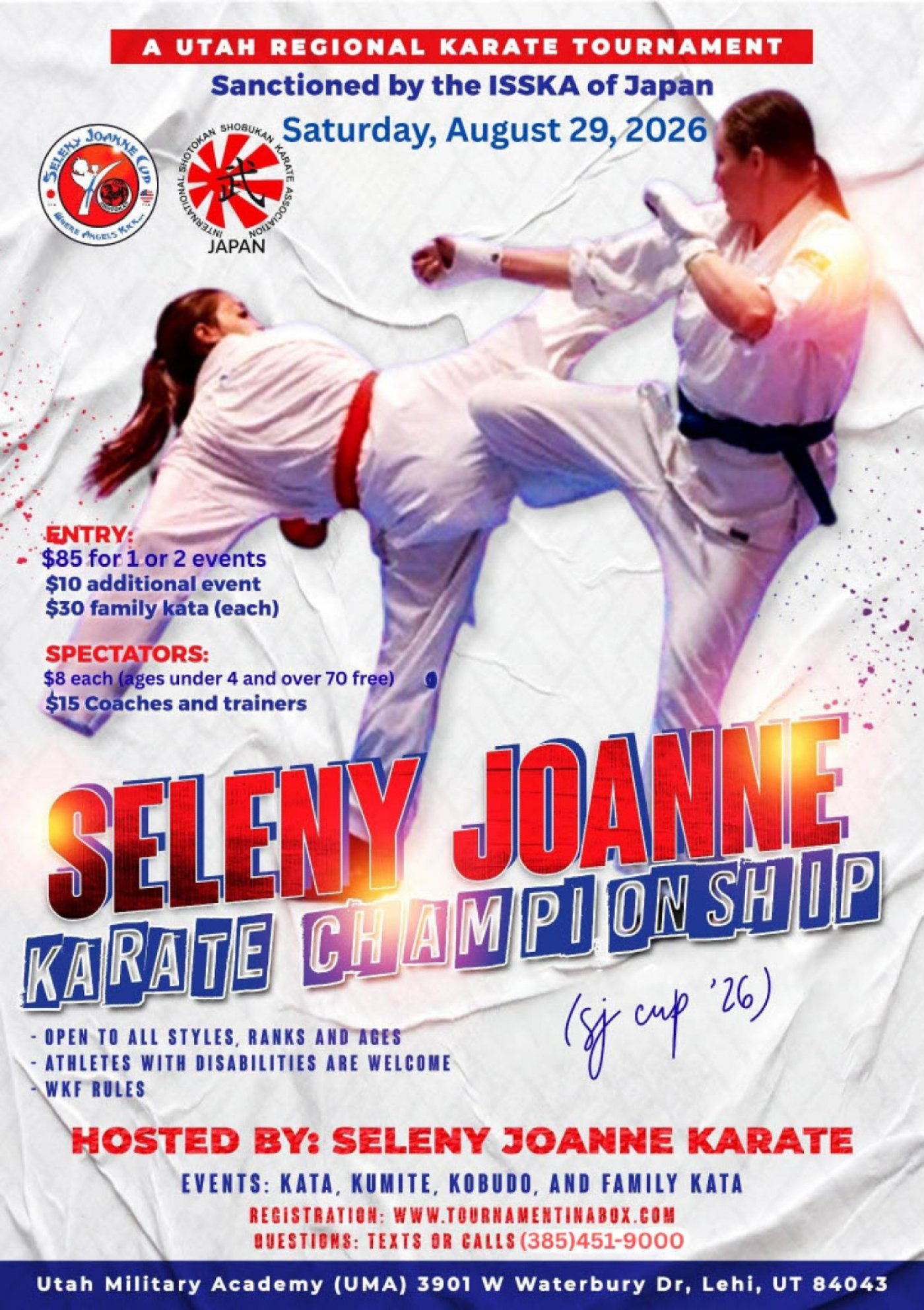 Join us for the Seleny Joanne Cup 2026 (SJ Cup ’26), a Utah inter-regional OPEN karate championship organized by the Seleny Joanne Karate Association, a nonprofit organization, in loving memory of Seleny Joanne Crosby, a former karate champion who was called to heaven far too early after a tragic traffic accident. This meaningful event honors her beautiful legacy and passion for karate by bringing together all ages, all ranks, all karate styles, and all martial artists, including athletes with disabilities, for a day of competition, sportsmanship, and unity. The tournament includes kata, kumite, kobudo/weapons, family kata, and para-karate divisions, making it a welcoming and inspiring event for the whole martial arts community.