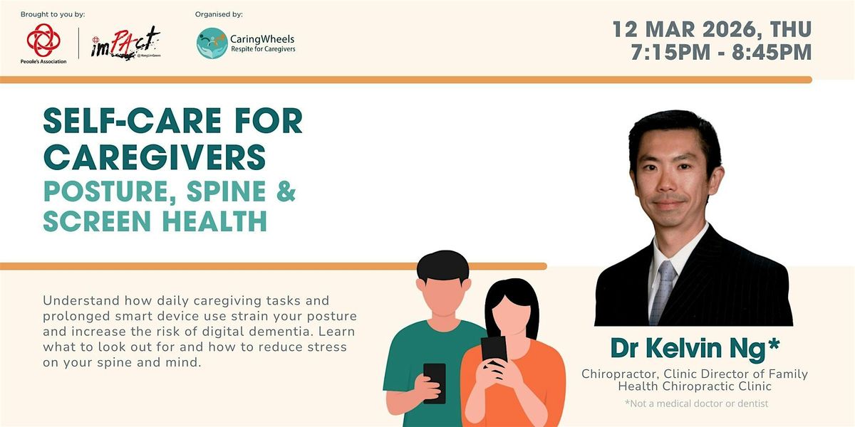 Dr Kelvin Ng, a Chiropractor specialising in posture and ergonomics, and a caregiver himself, has been invited to give a free talk for CaringWheels Members, covering:
