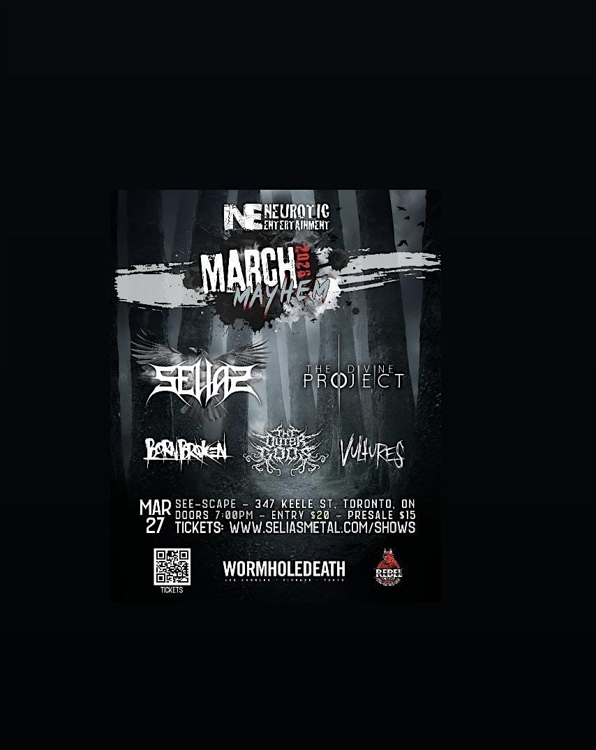 Get ready to rock out with an electrifying lineup featuring Selias, The Divine Project, Born Broken, The Outer Gods & Vultures!