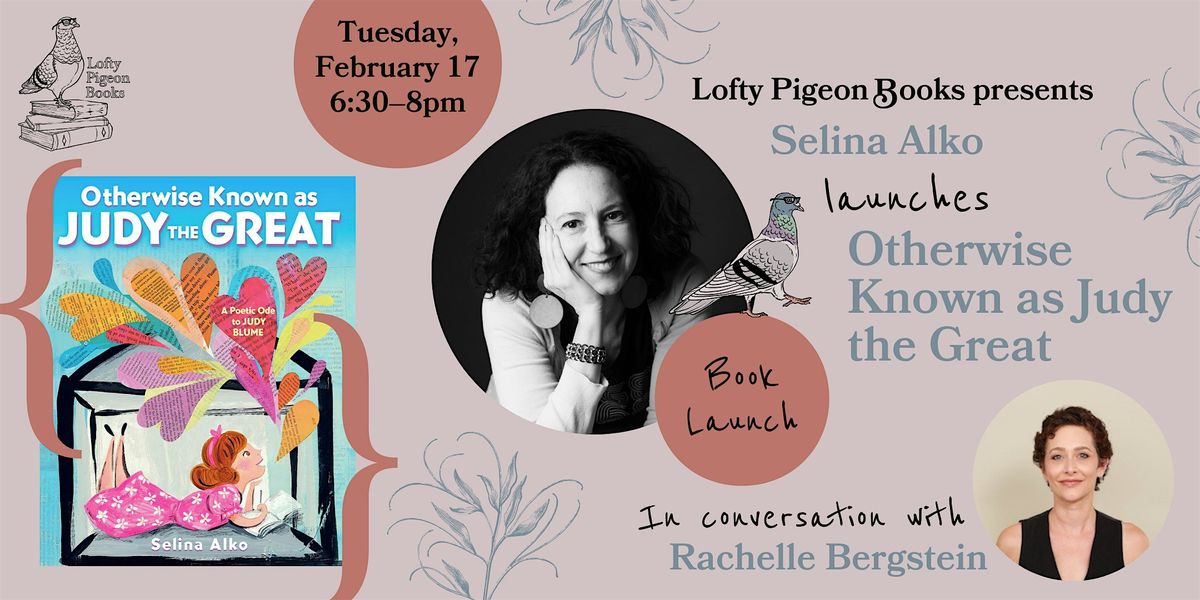 Join us for the launch of Selina Alko's Otherwise Known as Judy the Great, a poetic picture book about the beloved and trailblazing author Judy Blume and her childhood.