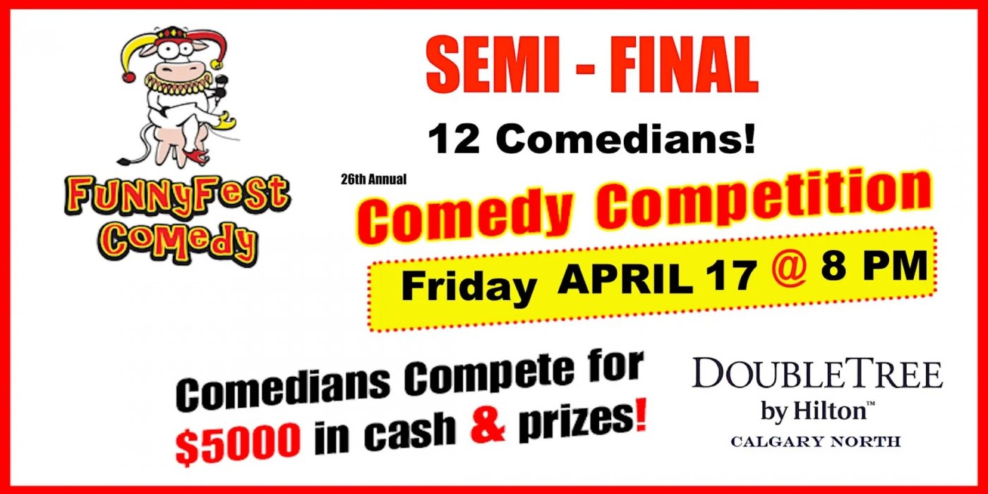SEMI-FINAL 26th Annual FunnyFest COMEDY COMPETITION - Laugh with 12 Competitors Trying to WIN and see 2 Headliners- Ballroom, DoubleTree by Hilton Calgary North