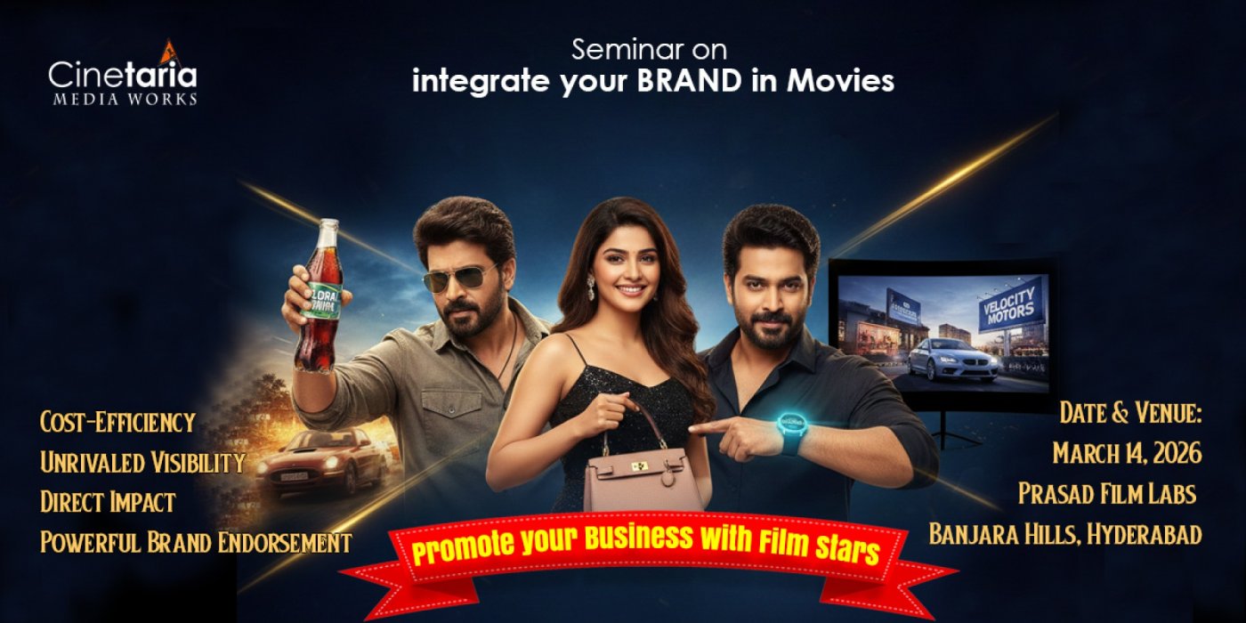 On behalf of Cinetaria Media Works, I am pleased to invite you to an exclusive Seminar on "Brand integration in Movies - Promote your Business with Film Stars" This event is specifically designed for CEOs, MDs, Business Owners, and Marketing Heads who are looking to leverage the massive reach of cinema through strategic brand integration.