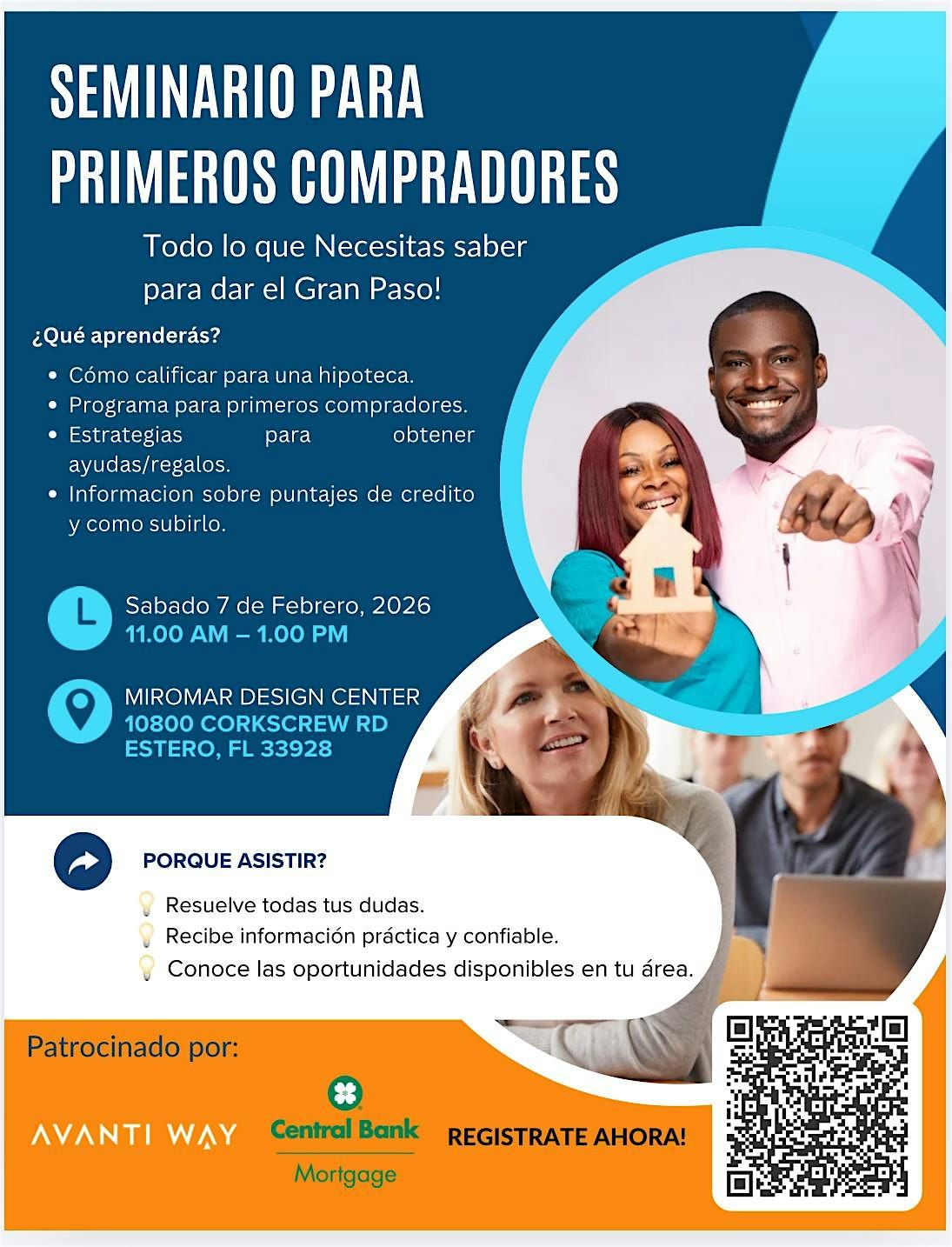 ¡Acompáñanos en nuestro Seminario de Primeros Comprasores! Ven y descubre cómo los programas de ayuda pueden acercarte a tu hogar ideal!