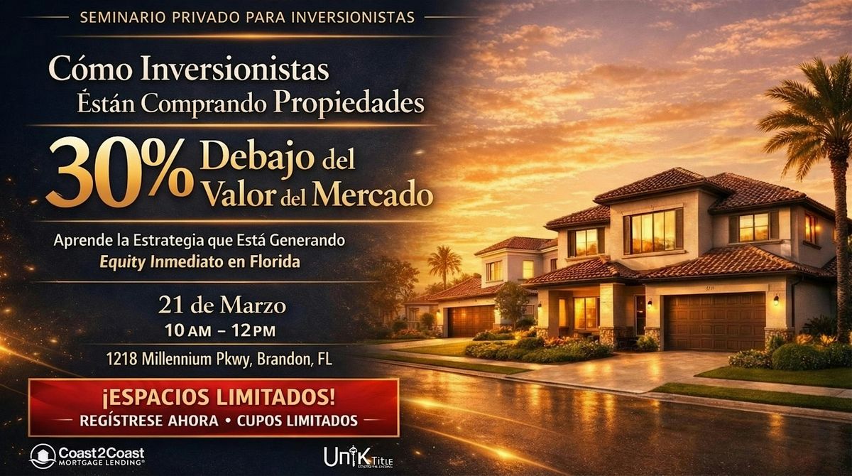 En este seminario exclusivo en Tampa, aprenderás cómo funciona el modelo que está permitiendo a inversionistas participar en desarrollo inmobiliario residencial sin necesidad de experiencia en construcción.