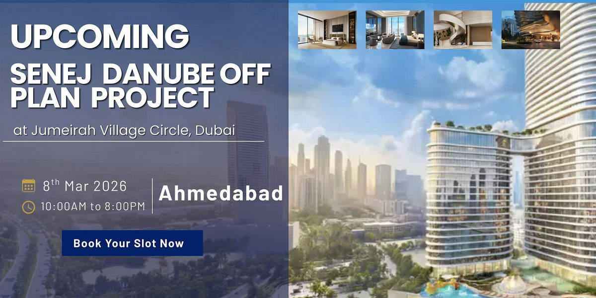 Attend this exclusive real estate showcase in Ahmedabad to explore the highly anticipated Senej Danube Off-Plan Project located at Jumeirah Village Circle (JVC), Dubai.