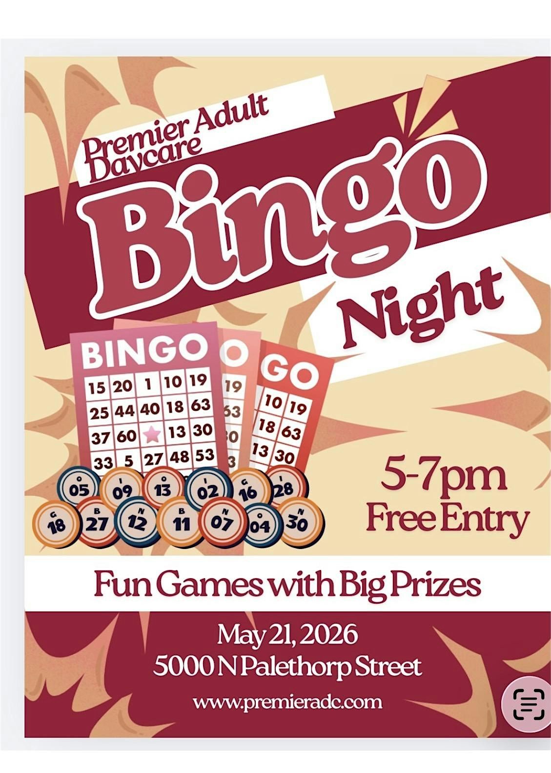 Join us for an exciting evening of in-person bingo fun! Whether you're a bingo pro or just looking to try your luck, it's the perfect chance to hang out, meet new people, and enjoy some laughs. Bring your friends and get ready to shout "BINGO!" loud and proud. Don’t miss out on the fun – see you there!