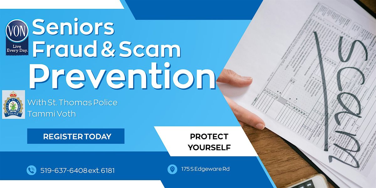 Join us in person with Tammy Voth from the St. Thomas Police Service for a fun and informative session all about protecting yourself from common frauds and scams that target seniors. Learn practical tips, hear real stories, and get empowered to stay safe in today’s tricky world. Perfect for seniors and their families who want to stay one step ahead of scammers. Don’t miss out on this chance to boost your confidence and knowledge in a relaxed, friendly setting!