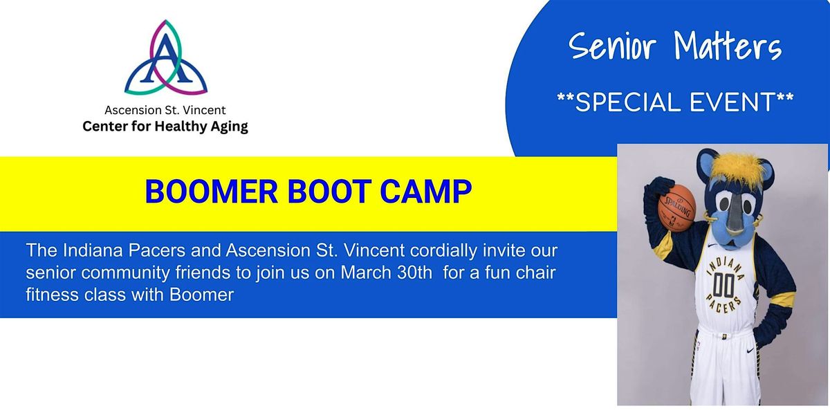 Welcome to Senior Matters: Boomer Boot Camp! Join us at Ascension Medical Group St. Vincent - Indianapolis Center For Healthy Aging on March 30, 2026 at 10:00 AM (Eastern Time) for a fun and interactive event focused on staying active and healthy as we age.