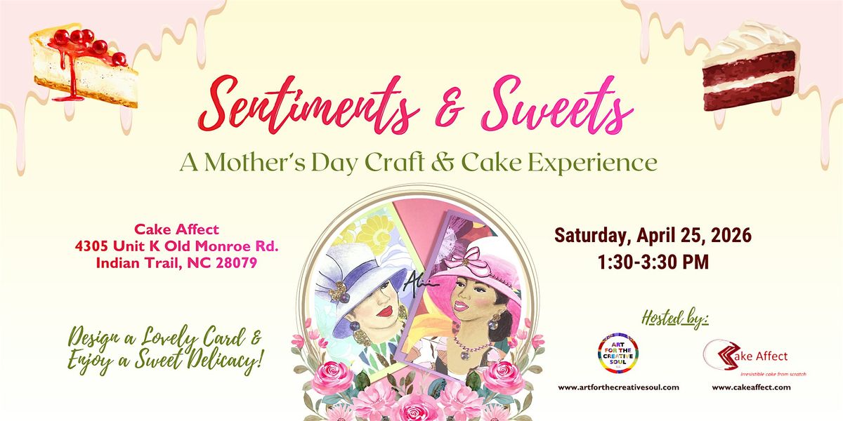 Just in time for Mother's Day, join us as we create lovely greeting cards while savoring delicious signature desserts at the 5-star bakery, Cake Affect in Indian Trail, NC.