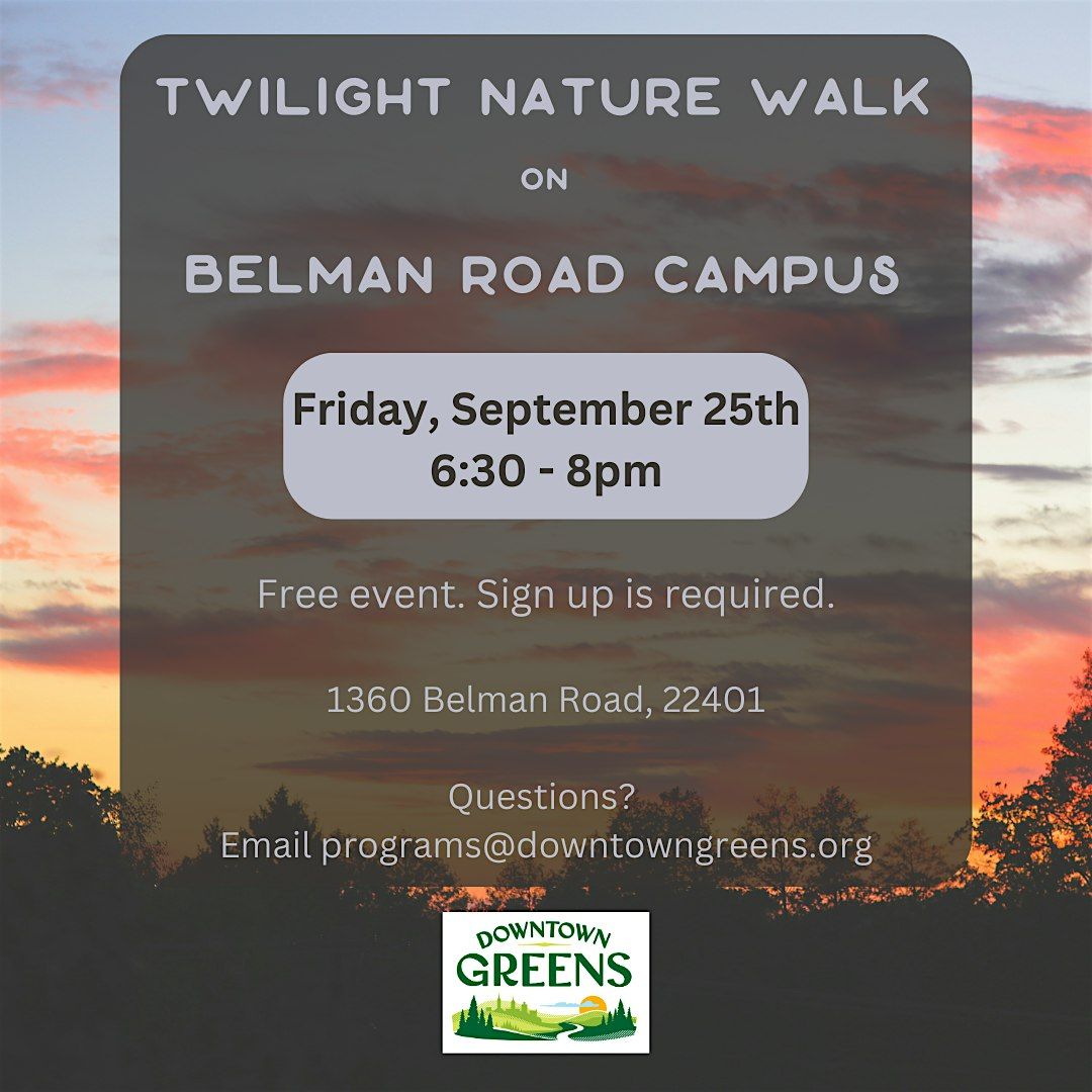 Join our own Janet Douberly at sunset for a beautiful twilight stroll through the fields and forest of our beloved Belman Road Campus.