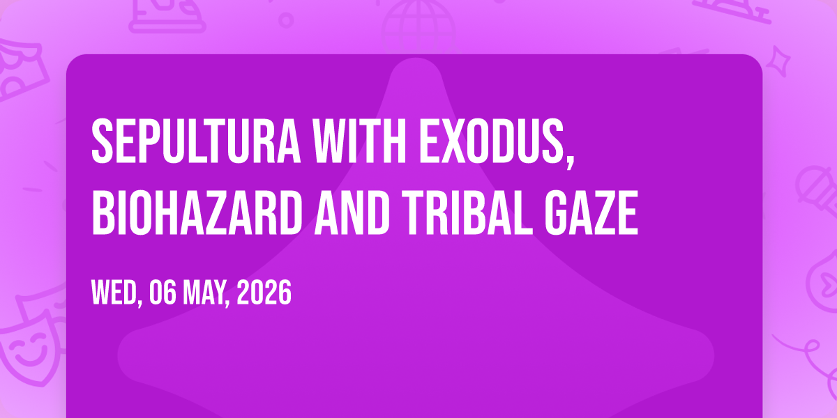 π Location: 36.1727, -86.7828π Welcome to Sepultura with Exodus, Biohazard and Tribal Gaze, where the impossible becomes possible and dreams take flight! ποΈ Join us at Brooklyn Bowl - Nashville in the heart of Nashville, TN for an event that will redefine your expectations. π On May 6th, 2026 at 11:30 PM, witness the transformation of space and time into something truly magical. β¨ It's a curated experience combining the best of innovation, entertainment, and community spirit, creating moments that will be remembered for years to come. Whether you're a first-time visitor or a seasoned enthusiast, prepare to be amazed. π Book now to ensure your place in this unforgettable experience!