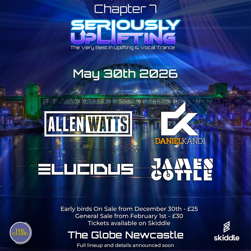Seriously Uplifting returns to The Globe Newcastle with Allen Watts, Daniel Kandi, Elucidus & James Cottle. 2 rooms, huge sound, amazing vibe.Artists