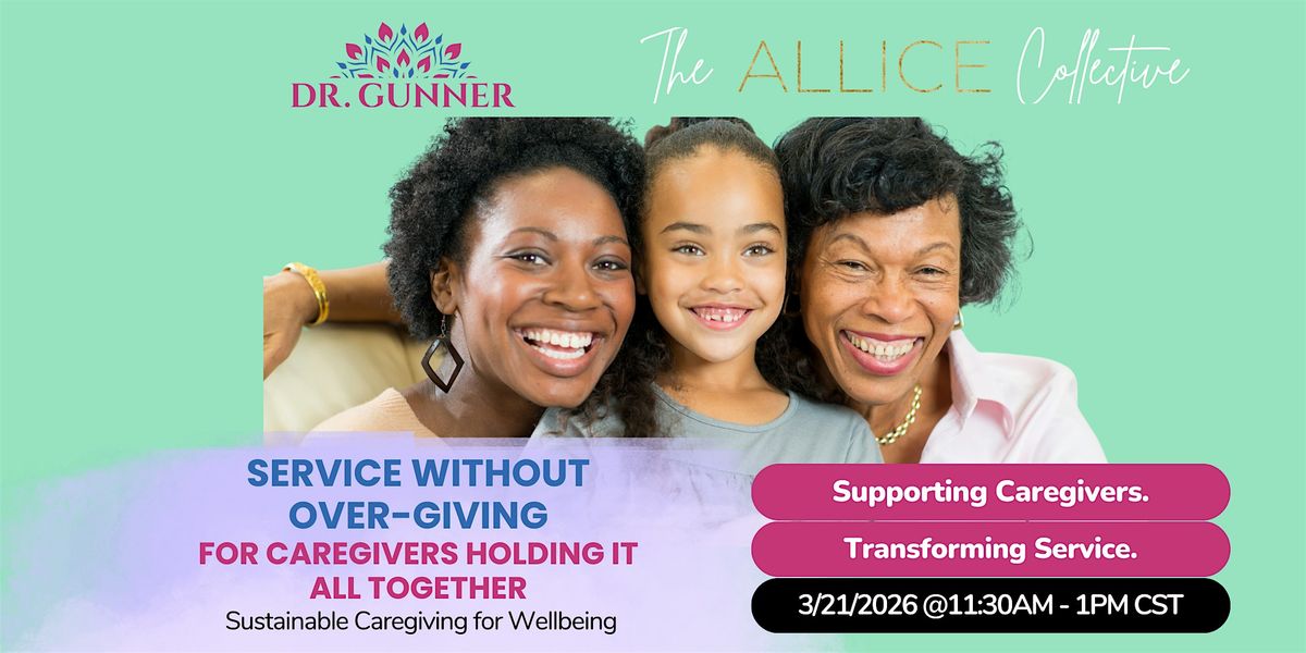 About the WorkshopDuring this interactive 90-minute experience, Dr. Amber Gunner and The ALLICE Collective guide participants through a grounded exploration of caregiving patterns, responsibility, and sustainable service.