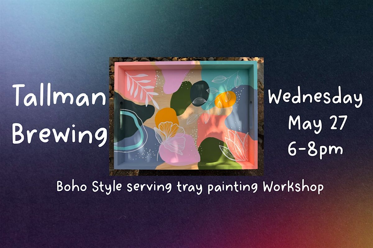 Ready to get creative? Join us for a fun and relaxed evening where you get to paint your own boho style Serving Tray at Tallman Brewing! Whether you're a beginner or a pro, grab your brushes and enjoy a cool vibe while crafting a unique serving tray you'll be proud to show off. Perfect way to spend some quality time with friends and let your artistic side shine!