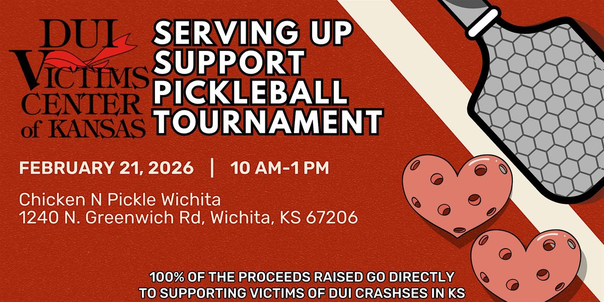 Join the DUI Victims Center of Kansas (DUI VCK) for our 1st Annual Serving Up Support Pickleball Tournament at Chicken N Pickle Wichita! 100% of the proceeds raised from this event will go directly to supporting victims and survivors of DUI crashes across that state of Kansas.