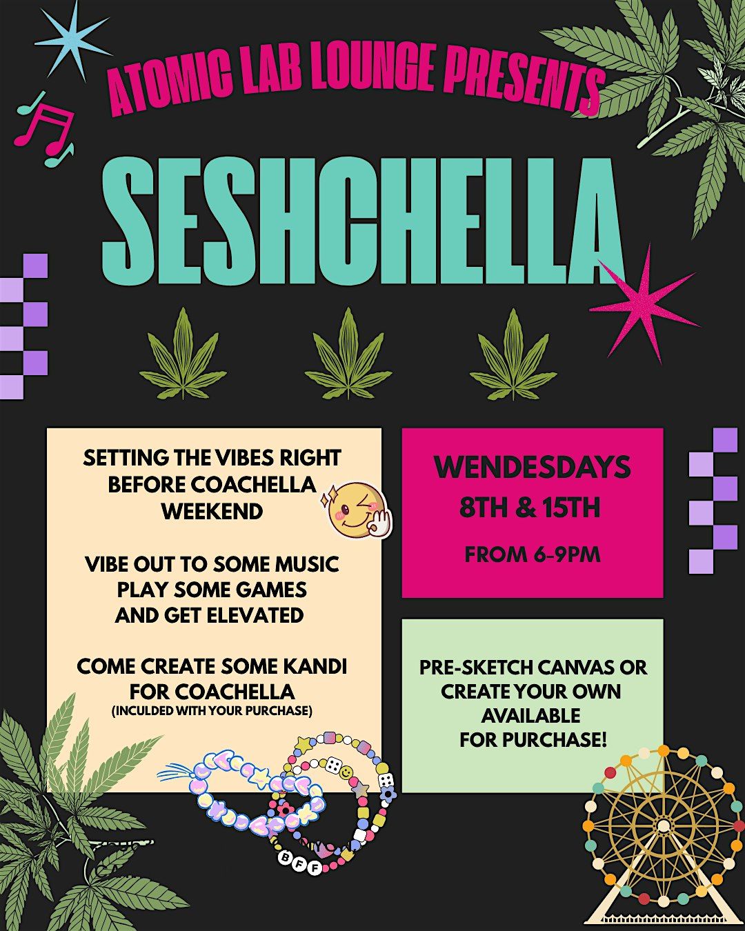 Come on down to Atomic Lab Lounge both Wednesdays the 8th & 15th right before Coachella weekend!! From 6-9pm