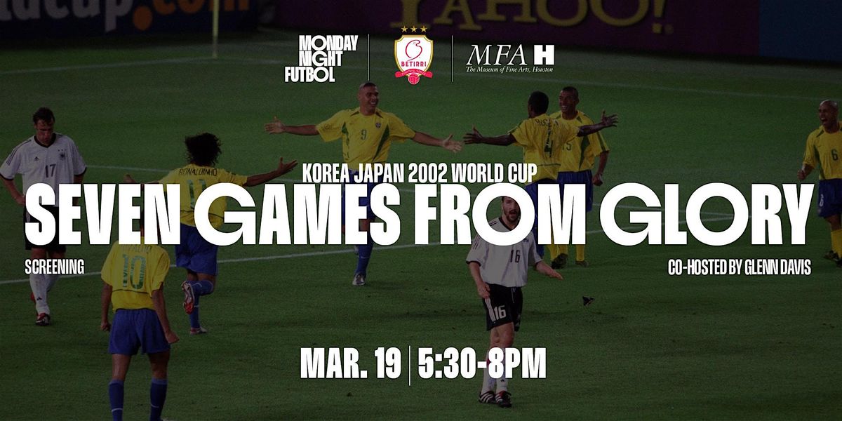 Join us for another special edition of Monday Night Futbol on Thursday , March19th at Favrot Auditorium in the Glassell School of Art at the Museum of Fine Arts, Houston to relive the 2002 World Cup.