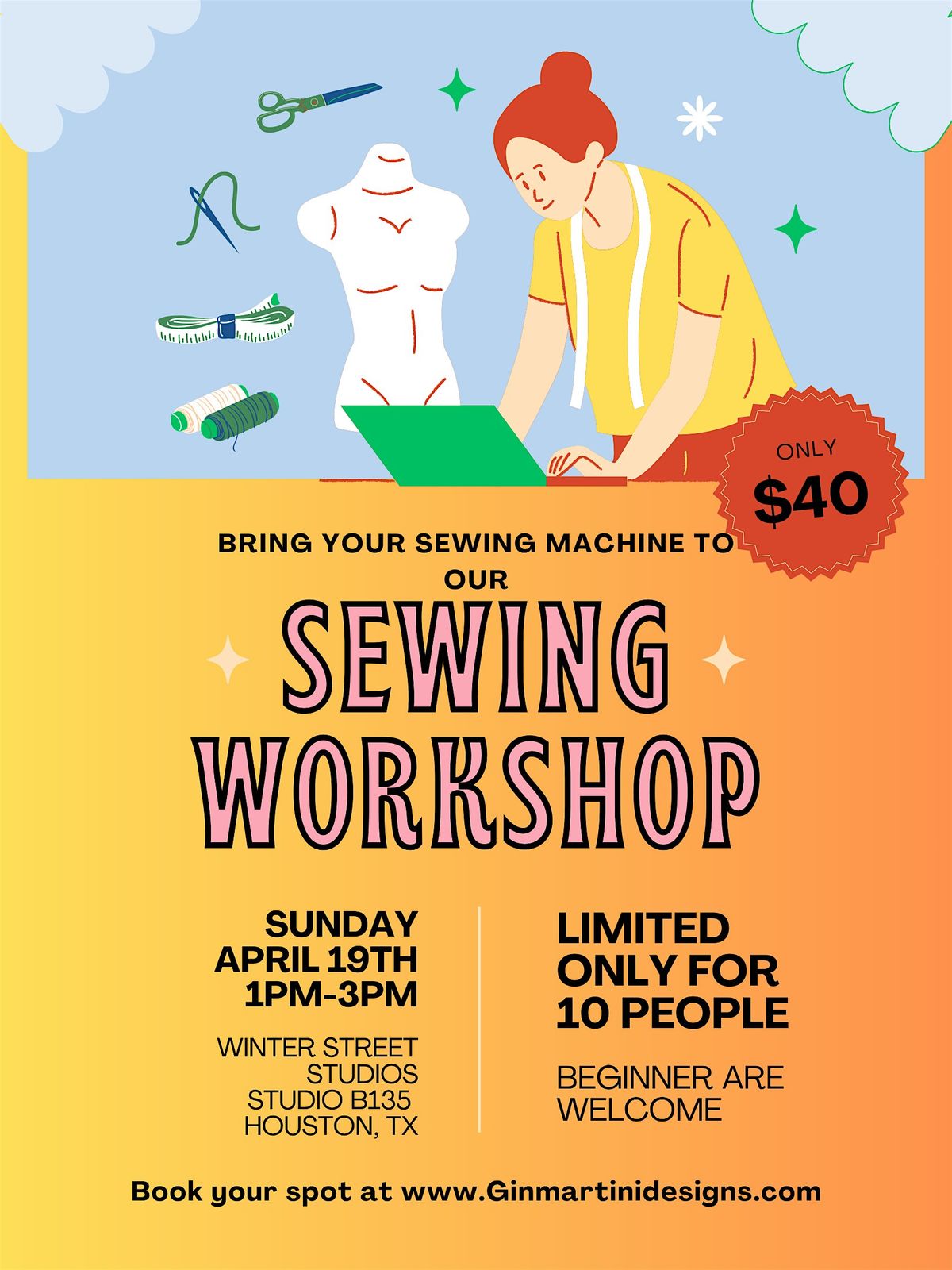Welcome Spring with your sewing machine! Dust it off or finally get that box open and bring your sewing Machine out to WInter Street studios to brush up on your techniques. This Class will be led by Gin Martini Of GinMartiniDesigns.com. We will be making a Summer Knit top out of stretchy Fabric .