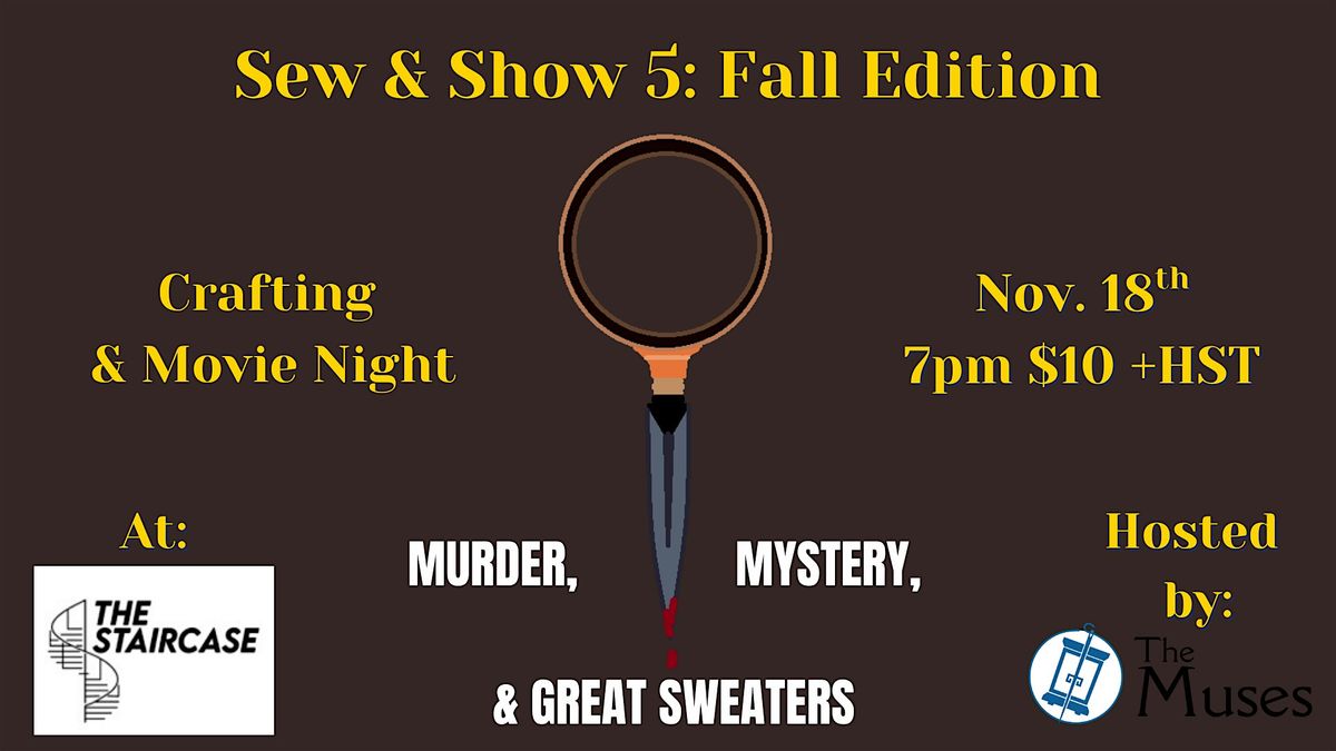 We're back with another edition of Sew & Show! JoinJoin The Muses at The Staircase Theatre on Nov. 18th for a fun night of crafting and a M**der mystery movie. It's the perfect fall evening.