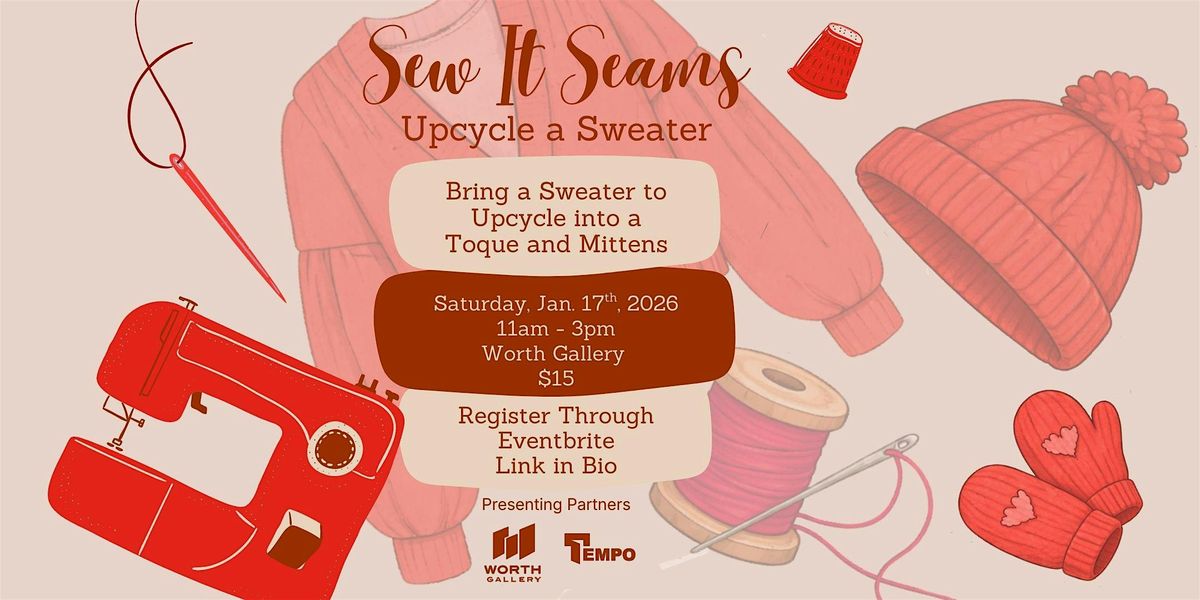 Get ready for a fun and crafty day in person where creativity flows and seams come alive! Whether you're a beginner or a sewing pro, join us to share tips, tricks, and plenty of creativity. Bring a sweater that you would like to upcycle into a pair of mittens and a toque. Don’t miss out on this awesome chance to upcycle with other sustainability enthusiasts!!! See you at Sew It Seams at Worth Gallery– let’s stitch, connect, and create!
