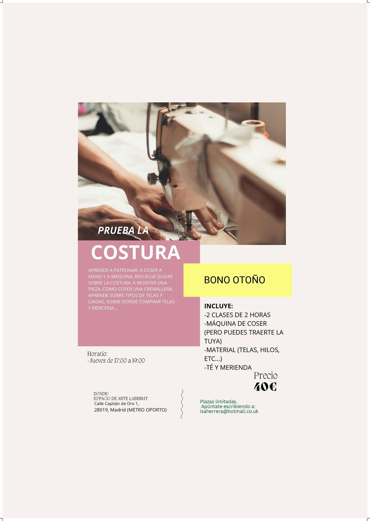 Sewing class/Clases de costura y Patronaje: Hazte tu propia ropa y bolsos