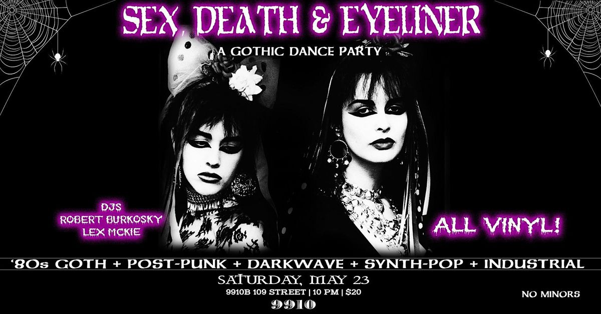 Sex, Death & Eyeliner returns to 9910 on May 23rd! DJs Robert Burkosky and Lex McKie be bringing their extensive record crates to the booth, spinning a relentless all-vinyl mix of the finest goth rock, post-punk, industrial, synth-pop and more! See y'all on the dancefloor!