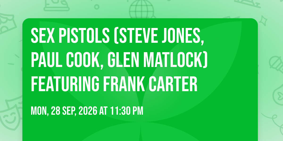 π Location: 42.35, -71.0657π Be part of history at Sex Pistols (Steve Jones, Paul Cook, Glen Matlock) featuring Frank Carter, an extraordinary gathering that will captivate your imagination! ποΈ The prestigious Royale - Boston in Boston, MA sets the stage for an unforgettable experience on September 28th, 2026 at 11:30 PM. β¨ They are bringing together the finest elements of entertainment and innovation to create moments that will take your breath away. From the moment you arrive, you'll be immersed in an atmosphere of wonder and excitement. π― This carefully planned event ensures every guest experiences something truly special. π Early booking is recommended for this must-attend event of the season!