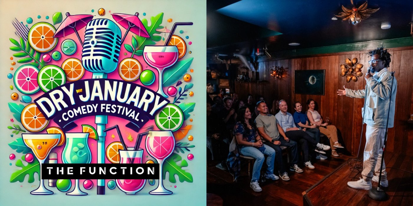 Whether you're skipping the booze or just looking for a night of top-tier comedy, join us every night this January at The Function! Doors open at 5:00pm M-F and 6:00pm on Saturday & Sunday. Don't miss the laughs, libations, and good vibes. 🥂🎤
