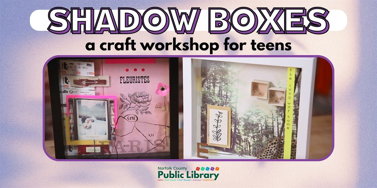 In this hands-on workshop, teens will design and build their own shadow box (also known as memory box) artworks using layers, textures, and meaningful objects.