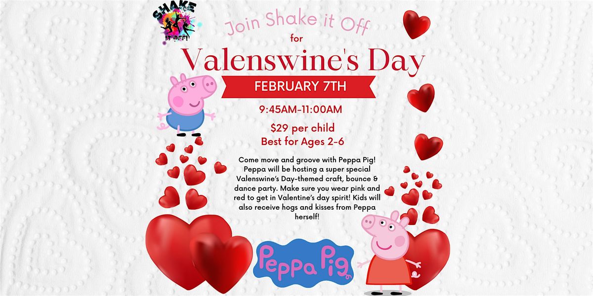 Get ready for an event full of love, laughter, and swine-tastic fun! Join Peppa Pig for a super special Valenswine’s Day-themed craft, bounce, and dance party that’s perfect for the whole family.